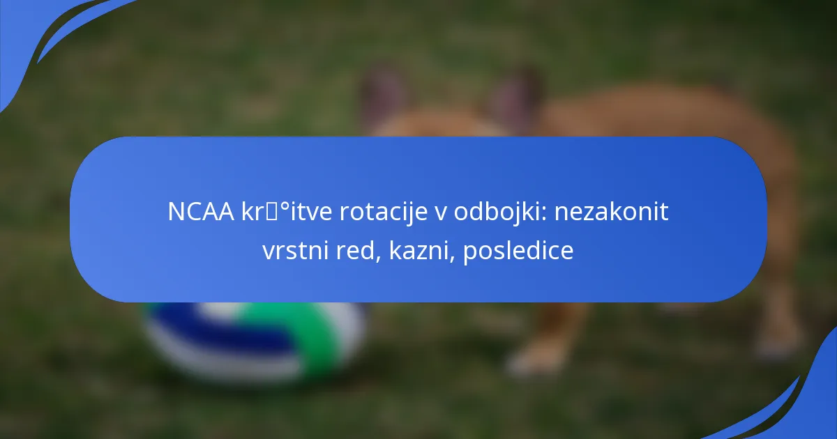 Nezakoniti udarci v NCAA odbojki lahko privedejo do več vrst kazni, vključno z odvzemom točk, stranskimi izhodi in izgubo servisa. Običajne kršitve vključujejo kršitve mreže, prekomerno seganje in nezakonite napade. Vsaka vrsta kršitve nosi specifične posledice, ki lahko spremenijo potek tekme.