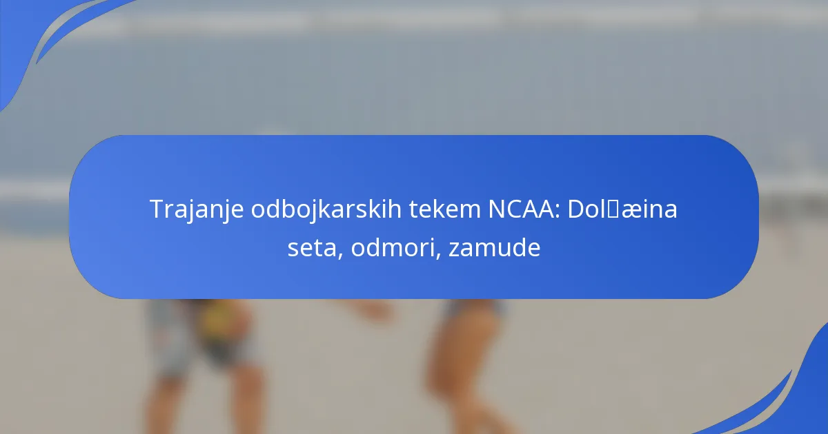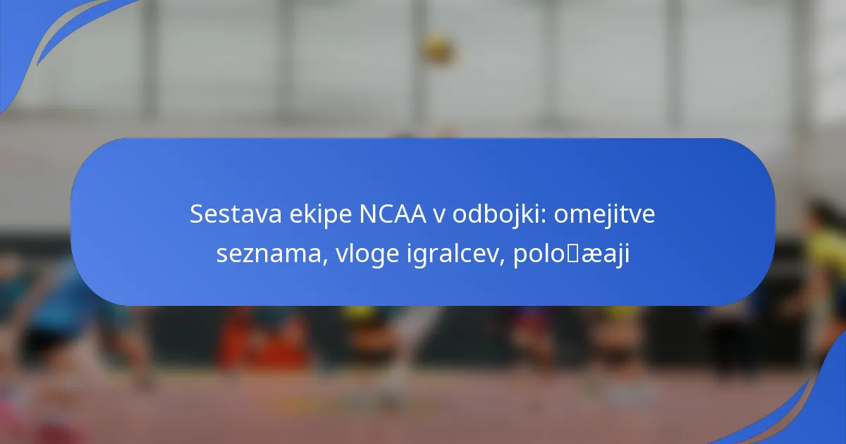 Ekipa NCAA v odbojki deluje pod specifičnimi omejitvami števila igralcev, ki se razlikujejo glede na divizijo, zato je za trenerje in igralce ključno, da razumejo te omejitve za učinkovito upravljanje ekipe. Vsak igralec ima specializirano vlogo, kot so zunanje napadalec, organizator igre ali libero, kar je ključno za optimizacijo tako napadalnih kot obrambnih strategij. Razumevanje teh položajev in njihovih interakcij lahko znatno izboljša dinamiko ekipe in splošno uspešnost na igrišču.